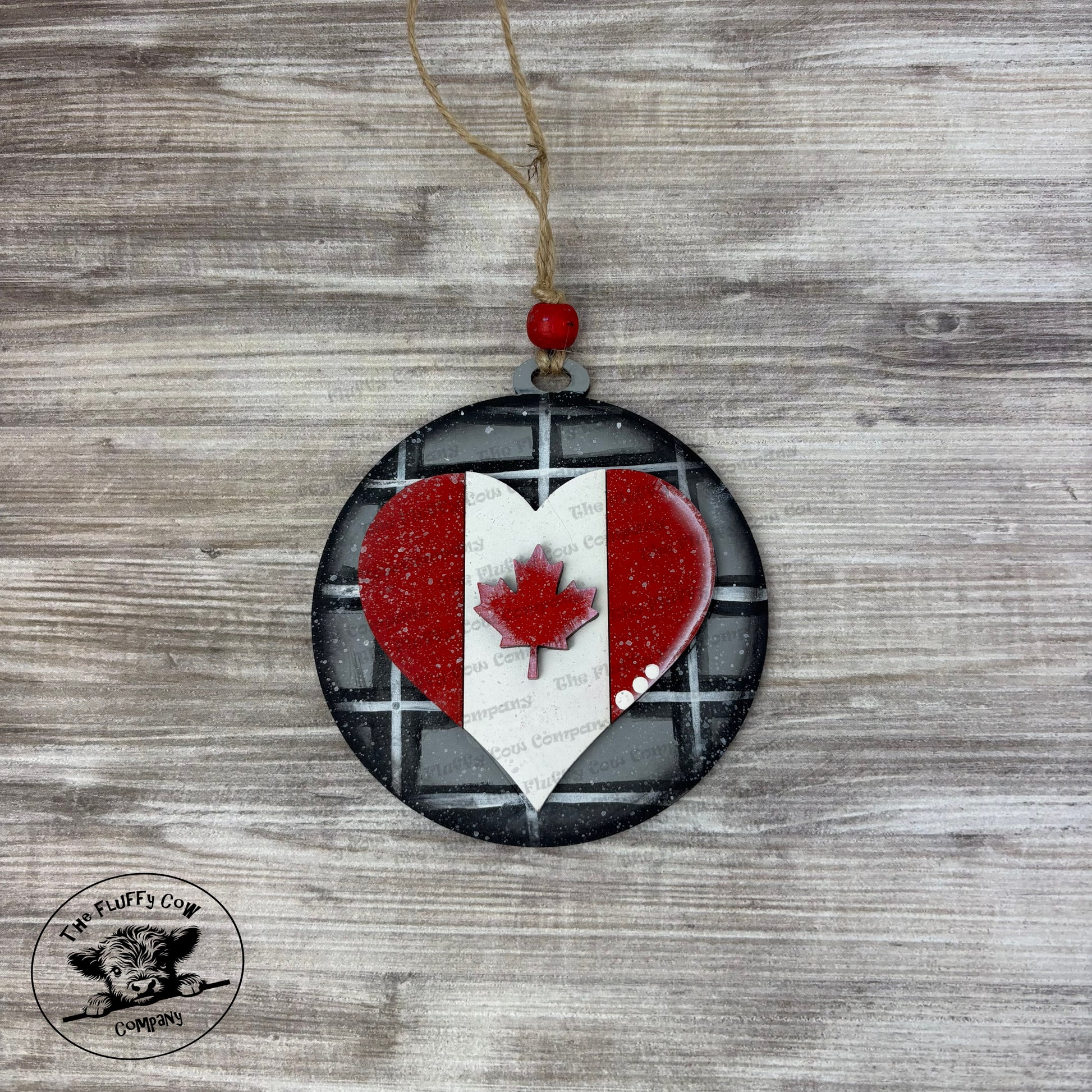 Enhance the patriotic spirit of your car with the Heart Canadian Flag Car Charm Ornament. Made with high-quality materials, this ornament showcases a heart-shaped Canadian flag design. Perfect for proud Canadians, it adds a touch of love and pride to your vehicle. Show your love for Canada on the go! Laser cut, and painted by hand.