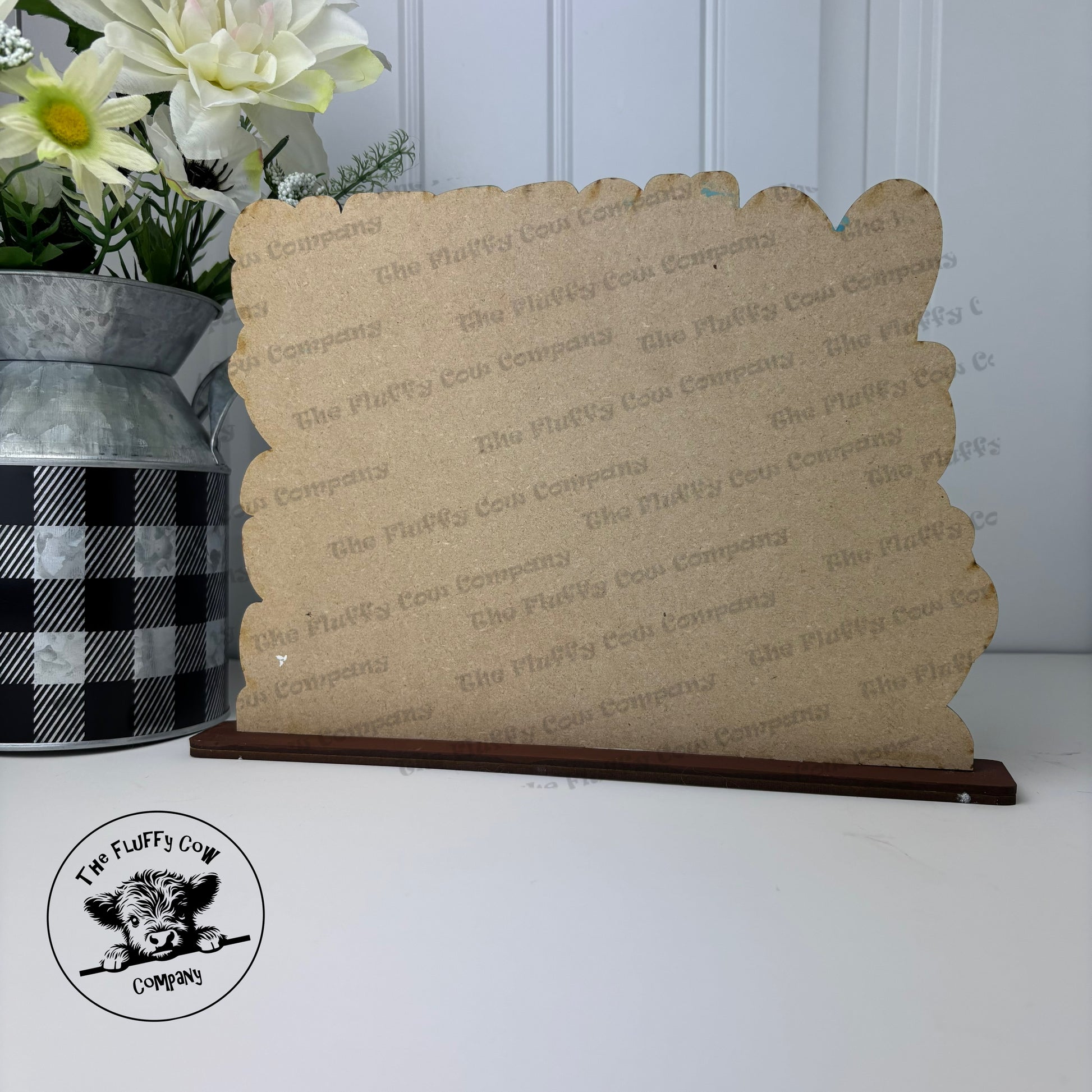 Introducing the Hoping into Spring Bunny Shelf Sitter, a hand-made and hand-painted laser-cut spring decor piece from Alberta, Canada. Perfect for adding a touch of unique and whimsical charm to your home, this shelf sitter is a must-have for the approaching spring season.
