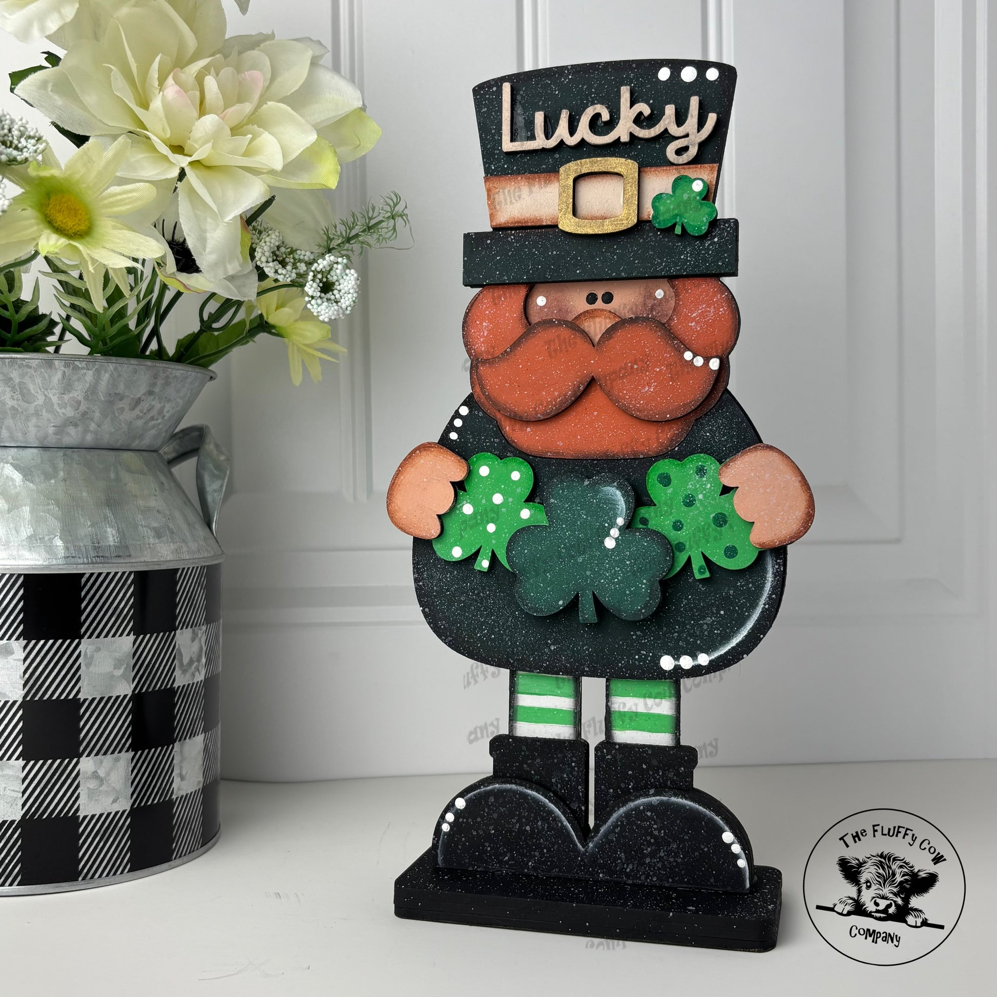 Expertly crafted for St. Patrick's Day, this festive Lucky The Leprechaun is a delightful addition to your holiday decor. With laser-cut details and hand-painted accents, this standing shelf sitter brings a touch of Irish luck to any space. Perfect for adding a playful touch to shelves, mantels, or tabletops.