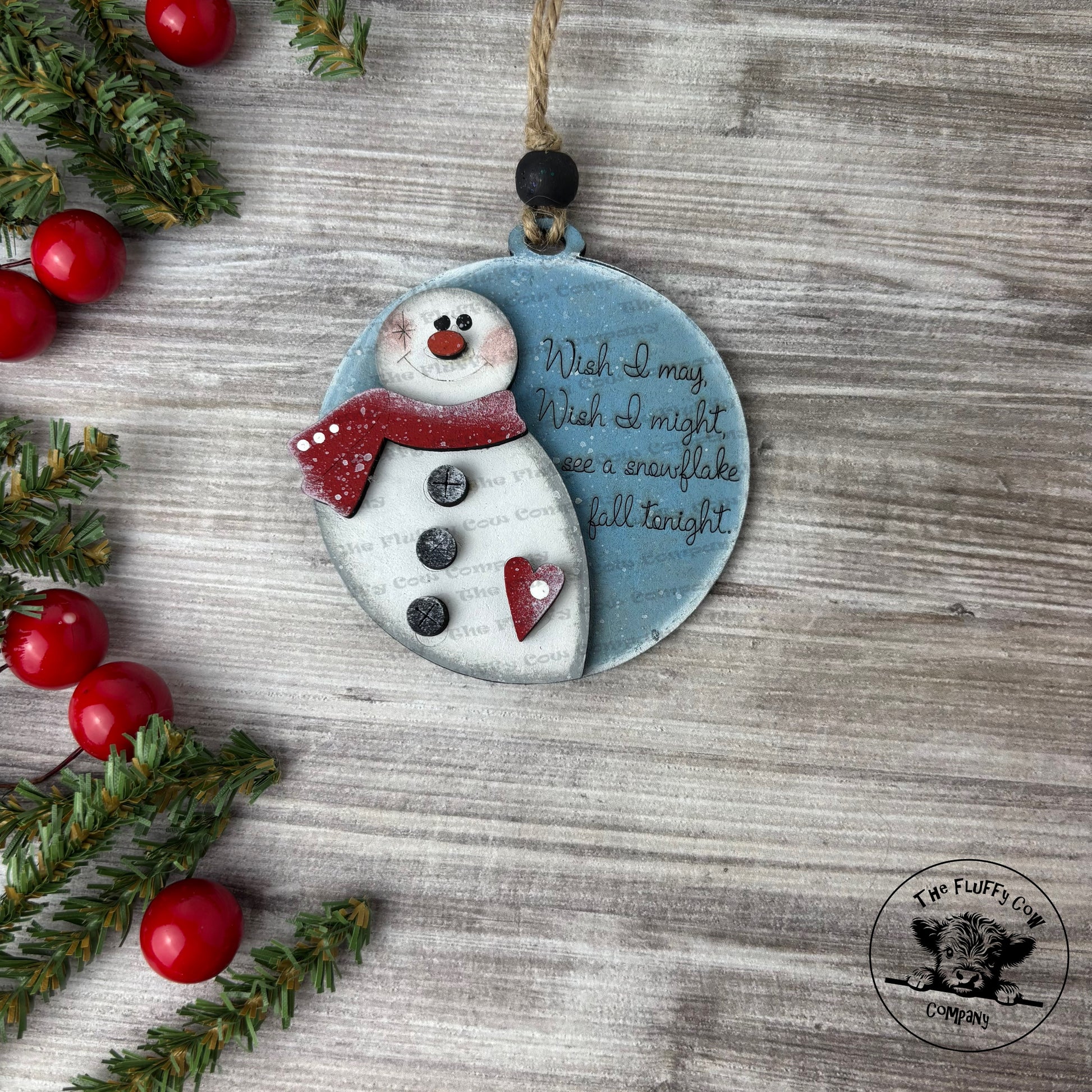 Celebrate the magic of the winter season with our handmade "Wish I May I Wish I Might Snowflake" ornament. Cut with precision using a laser in Alberta, Canada, this one-of-a-kind snowman design will add a whimsical touch to your Christmas decor.
